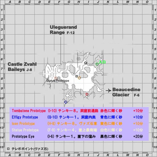 Statue Prototype (F-8) テンキー4。崖上最南端 白色に輝く砂 +10分